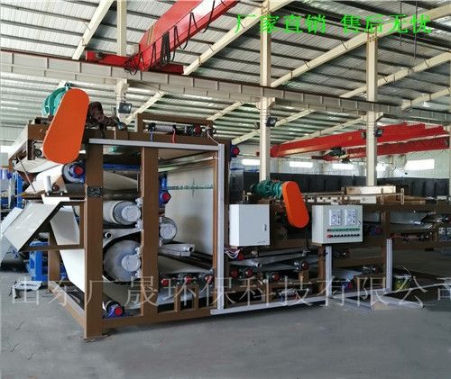 带式压泥机是通过两条滤带缠绕在一系列顺序排列、大小不等的辊轮上,利用滤带间的挤压和剪切作用,来脱除料浆中水分的一种压滤设备,是一种进行污泥脱水减量化处理的理想设备。