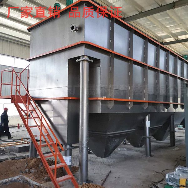 一体化气浮设备工作原理是:空气通过泵送入压力溶气罐,在0.5Mpa压力下被强制溶解在水中,在突然释放的情况下,溶解在水中的空气析出,形成大量至密的微气泡群在缓慢上升过程中吸附在悬浮物密度下降而上浮,达到去除SS和CODcr的目的。