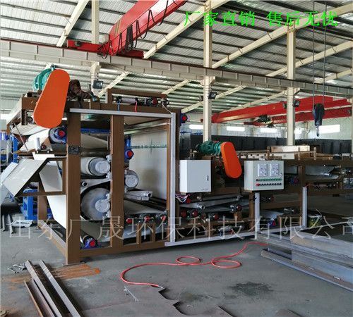 清洗泥沙泥水压泥机是通过两条滤带缠绕在一系列顺序排列、大小不等的辊轮上,利用滤带间的挤压和剪切作用,来脱除料浆中水分的一种压滤设备,具有着能连续作业、自动化程度高、节能、使用维护方便等优点,是一种进行污泥脱水减量化处理的理想设备。