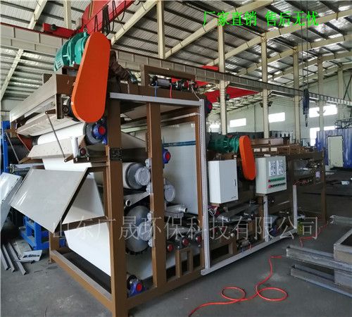 带式压滤设备主要利用了滤带能把水分过滤掉,而把污泥截留到滤带上的原理进行的。滤带是用高强度的聚酯和尼龙材料的丝线编制而成,这些材料的丝线通过特殊的编织方法做成滤带后,在高压拉拽的作用下能保持不变形。